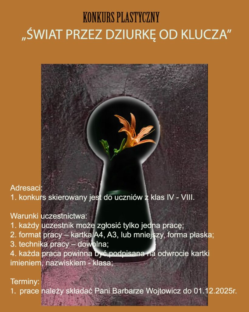 Konkurs plastyczny „Świat przez dziurkę od klucza” Podobno przez dziurkę od klucza widać więcej… Jeżeli chcesz to sprawdzić, właśnie nadarza się okazja… Ten konkurs jest dla Ciebie. Zapraszamy!