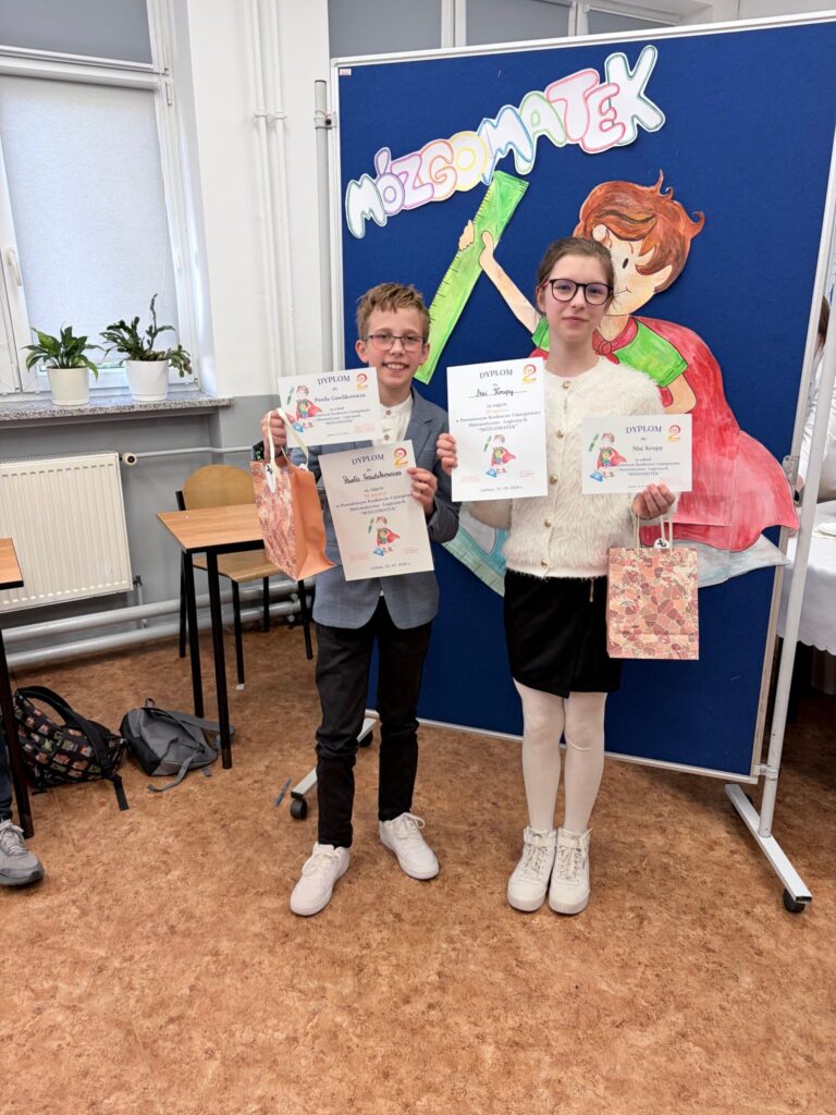 Powiatowy Konkurs „Mózgomatek” Nasi uczniowie zajęli zaszczytne III miejscew Powiatowym Konkursie „Mózgomatek” organizowanym przez SP2 w Lędzinach. Zagadki logiczne dla nich to pestka ! Ogromne gratulacje dla Mai oraz Pawła z klasy 5a !!! Wizyt: 3