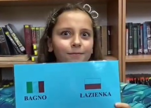 Uczniowie z klasy 2c, którzy uczęszczają na dodatkowe zajęcia z języka włoskiego przedstawiają włoskie wyrazy, które wyglądają znajomo, ale mają zupełnie inne znaczenie. Najczęściej bardzo zaskakujące, co widać po minach naszych prezenterów ![]()